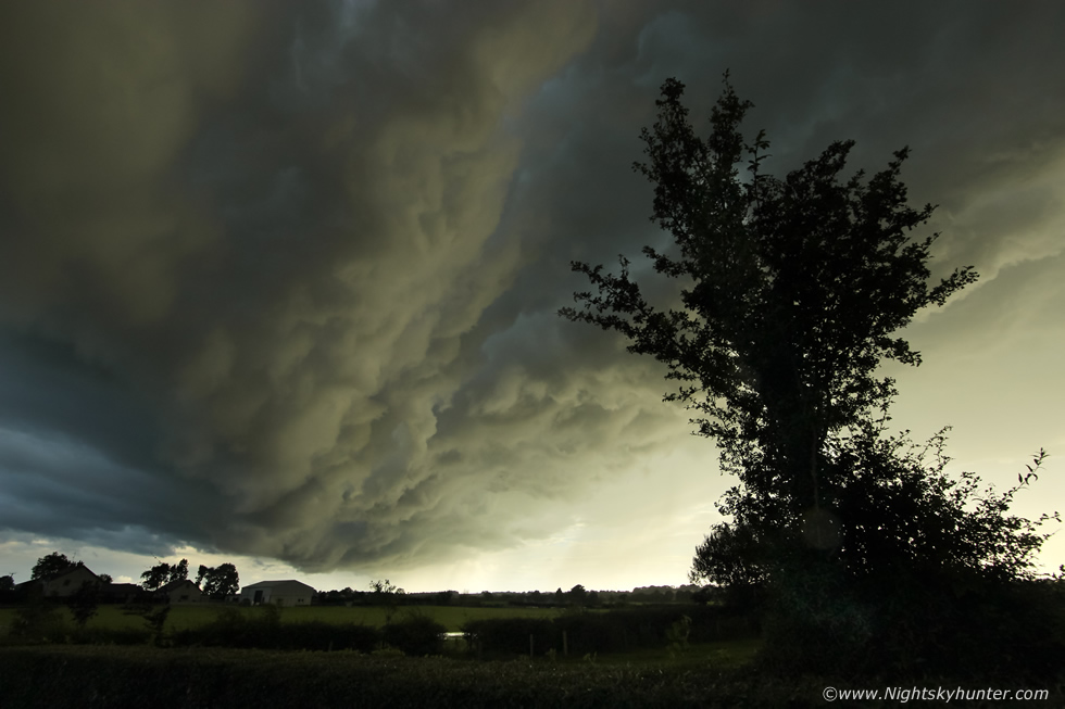 We raced along the back roads and got ahead of it by a few minutes lead time, I want going to fall into the trap of driving for another half hour looking for a good place to pull over, we approached a hill which looked full of promise, I said to Roisin ''I don't care what's on top of this hill, I'm pulling over!'', I reached the summit and pulled onto the side of the narrow road a few meters down from an isolated country house, I looked to the sky and yelled ''get outside quick Roisin and get shooting!''. I yelled ''Holy S**t' out loud, not to anyone in particular, more to myself, I had to get expressing how I was feeling, the sky beside us looked absolutely epic! I couldn't believe my luck, this was the kind of structure I had been after all year, I was in the zone again taking constant stills checking my exposure, composition and horizon and depth of field, I was on ISO400 here with a fast 10mm lens stopped down a few clicks, the exposure looked perfect and matched what I was seeing very closely.