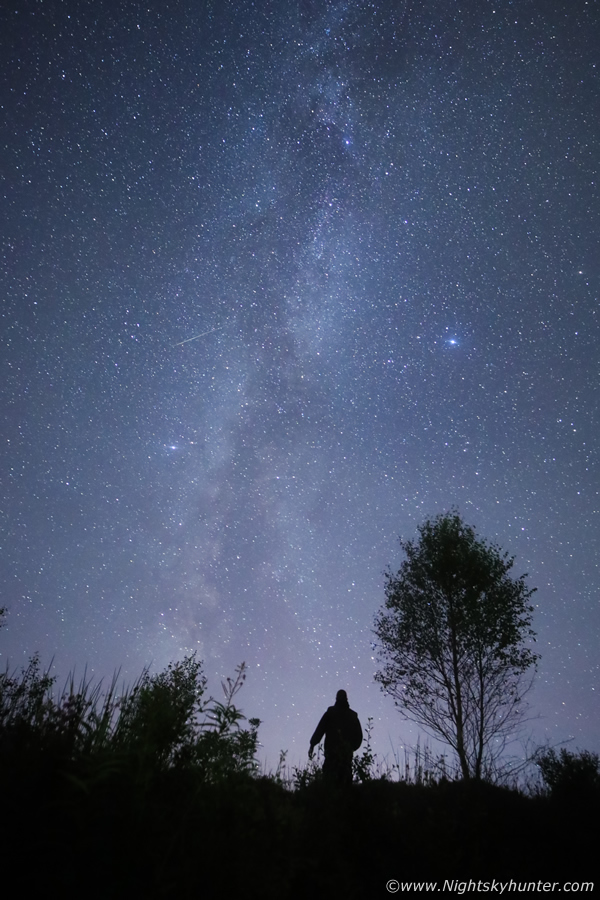I asked Paul to stand in again for a portrait version and as I watched a mag +3 meteor zipped across the sky above him, you can see the trail above the star Altair. The mist increased and began to affect the transparency of the sky leaving our cameras and lenses absolutely soaked.