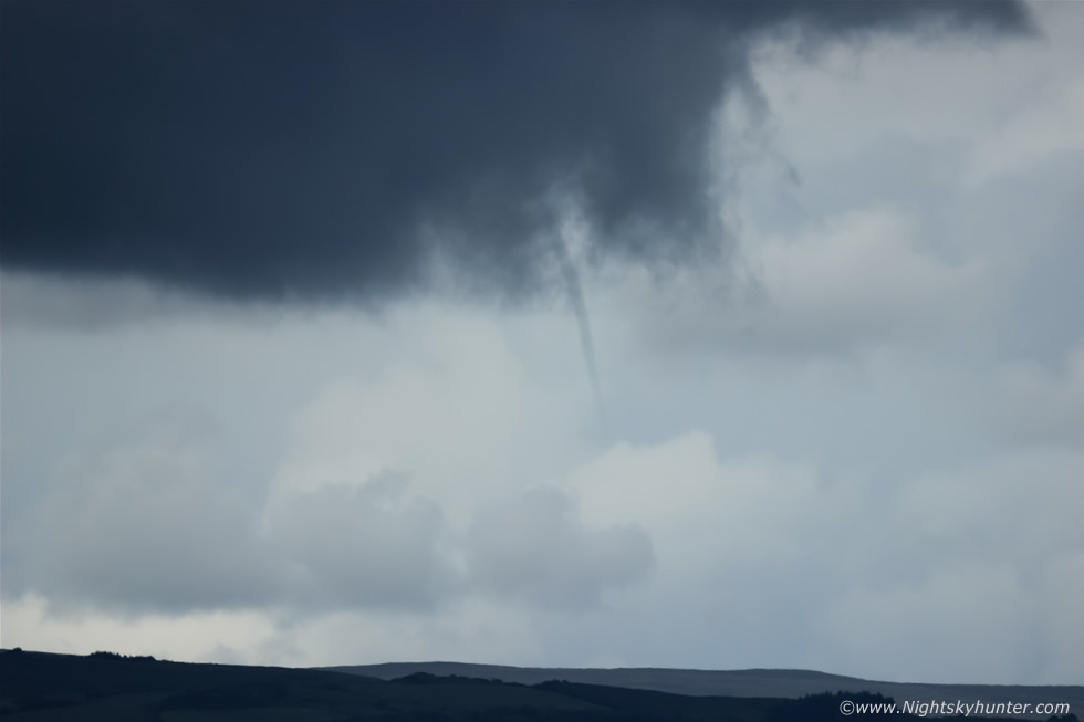 I knew something was going to happen however I needed my wits about me, the worse thing to do in these situations is to just stand there frozen to the spot unsure of what to do, when you feel that sensation immediately break the trance and take decisive action. I instantly walked around the side of the van, opened the door, attached the Canon 100-400mm USM telephoto lens and turned around for another look and there at 12.40 BST was a funnel cloud!