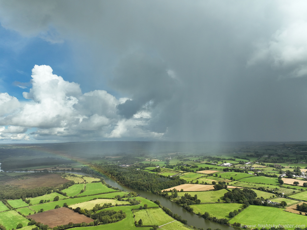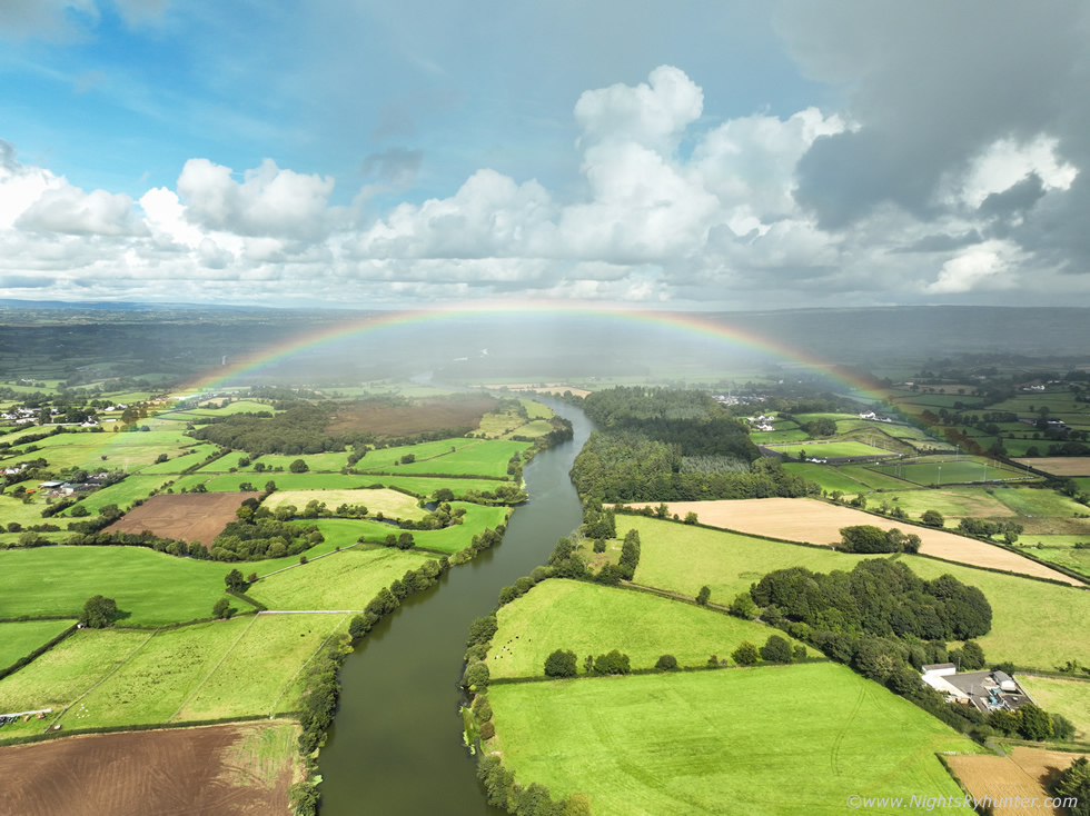 The state of the majestic River Bann was shocking, it was completely covered from bank to bank and extending as far as the eye could see in blue-green algae, this had been all over the news recently and has become a real concern in recent years, but this year has been the worst anyone had ever seen, perhaps in history, it even made it onto the main ITN English news on television, seeing it here for myself was beyond words. I mentally ignored it and enjoyed flying over the beautiful countryside, then the sun broke out lighting up the fields in vibrant colours, within minutes a beautiful low level rainbow formed directly over the river, nature couldn't have handed me a better composition. I took aerial stills and video sequences, I had to admit it was extremely photogenic.
