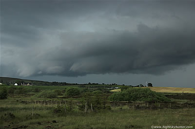 | Third day in a row of storm chasing on June 9th 2014 when we chased across three counties with over 8 hours on the road. The day began with an early afternoon storm intercept with large wall cloud in Co. Fermanagh then multiple storms in Bundoran, Donegal, and ending the day to the S of Omagh, the storms we encountered were back-building very high precip cells which produced hours of intense torrential rainfall, road flooding, and frequent thunder and lightning then climaxing with significant rotation and an all-sky whale's mouth display. One page report with 16 images & 1 video clip. - REPORT. | ![]() |