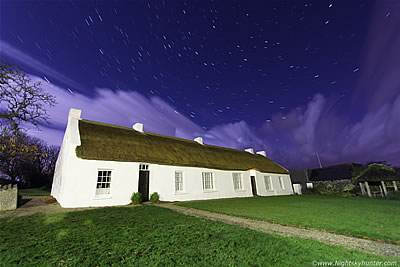 | What began as a late night aurora hunt at the Co. Antrim coast on November 5th 2014 turned into a moonlit photo shoot of the famous and haunted 17th century Hazlett House in Castlerock. I had a wonderful solo 2am photo shoot and star trail session of this beautiful thatch roof cottage with stars and convective clouds aloft and dramatic natural lighting. I also did several time lapse sequences at Downhill Beach with two cameras in operation under the surreal light of a near full moon. One page report with 8 images & 1 video clip. - REPORT. | ![]() |