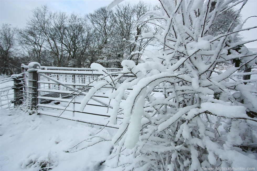 The snow/ice scenes here were absolutely beautiful, untouched pure Winter scenes and it felt great knowing I was the first person in this area admiring the view. Snow rime & snow again on the overhanging trees and fence post.